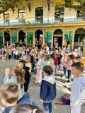-une célébration dans la cour de l'école pour les élèves de maternelle